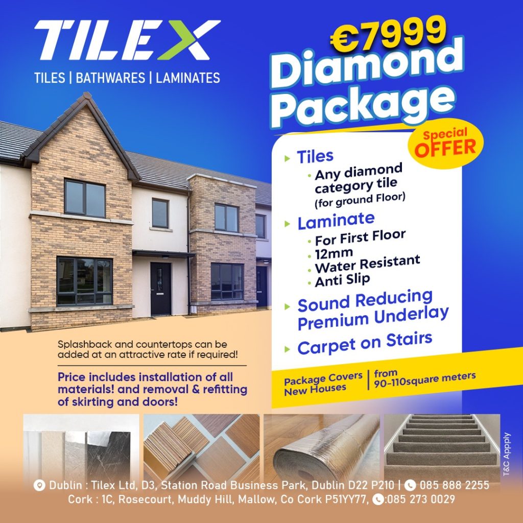 അയര്ലണ്ടിലെ പ്രശസ്ത ടൈല്സ് ഷോറൂമായ Tilex-ല് വമ്പന് ഡിസ്കൗണ്ട് മേള. ഗോള്ഡ് പാക്കേജ്, ഡയമണ്ട് പാക്കേജ് എന്നിങ്ങനെ രണ്ട് വ്യത്യസ്ത ഓഫര് പാക്കേജുകളാണ് Tilex ഉപഭോക്താക്കള്ക്കായി ഒരുക്കിയിട്ടുള്ളത്.