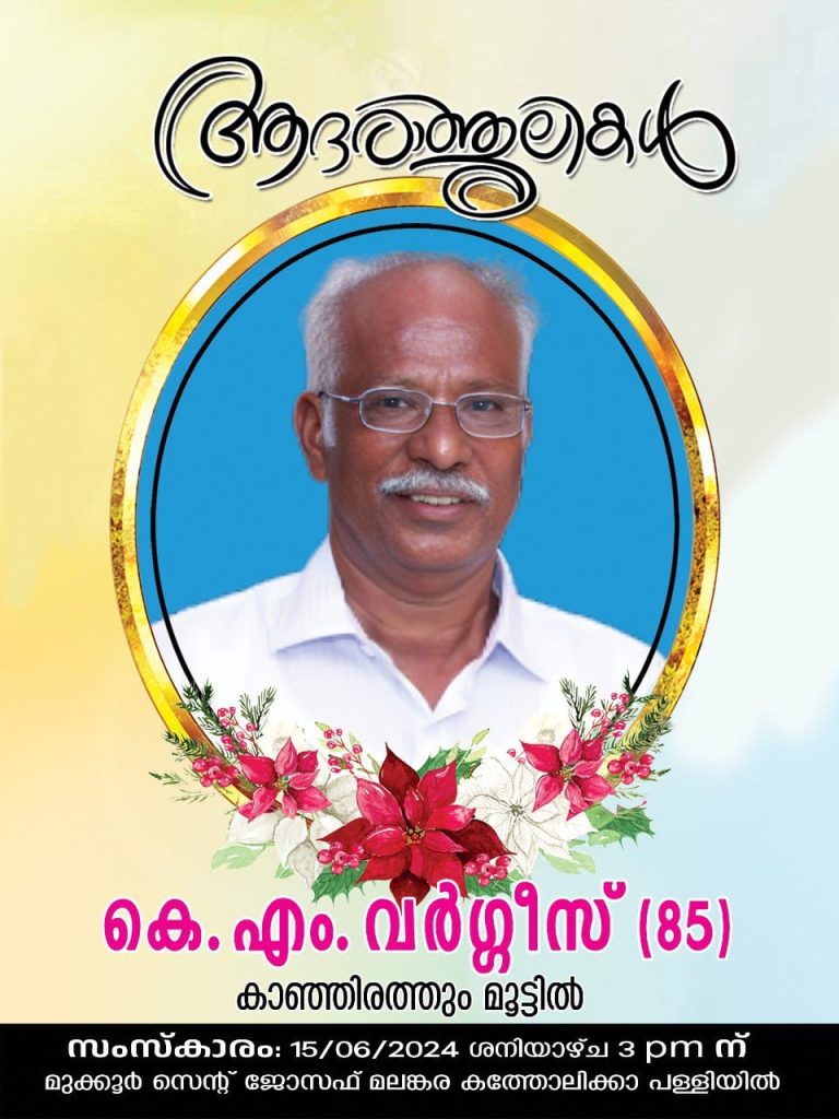 സംസ്കാരം ജൂൺ 15 ശനിയാഴ്ച പരേതന്റെ മാതൃ ഇടവക ആയ കുന്നന്താനം മുക്കൂറിലുള്ള സെന്റ് ജോസഫ്സ് മലങ്കര കത്തോലിക്കാ ദേവാലയത്തിൽ ഉച്ചയ്ക്ക് 3 മണിക്ക് നടത്തും.